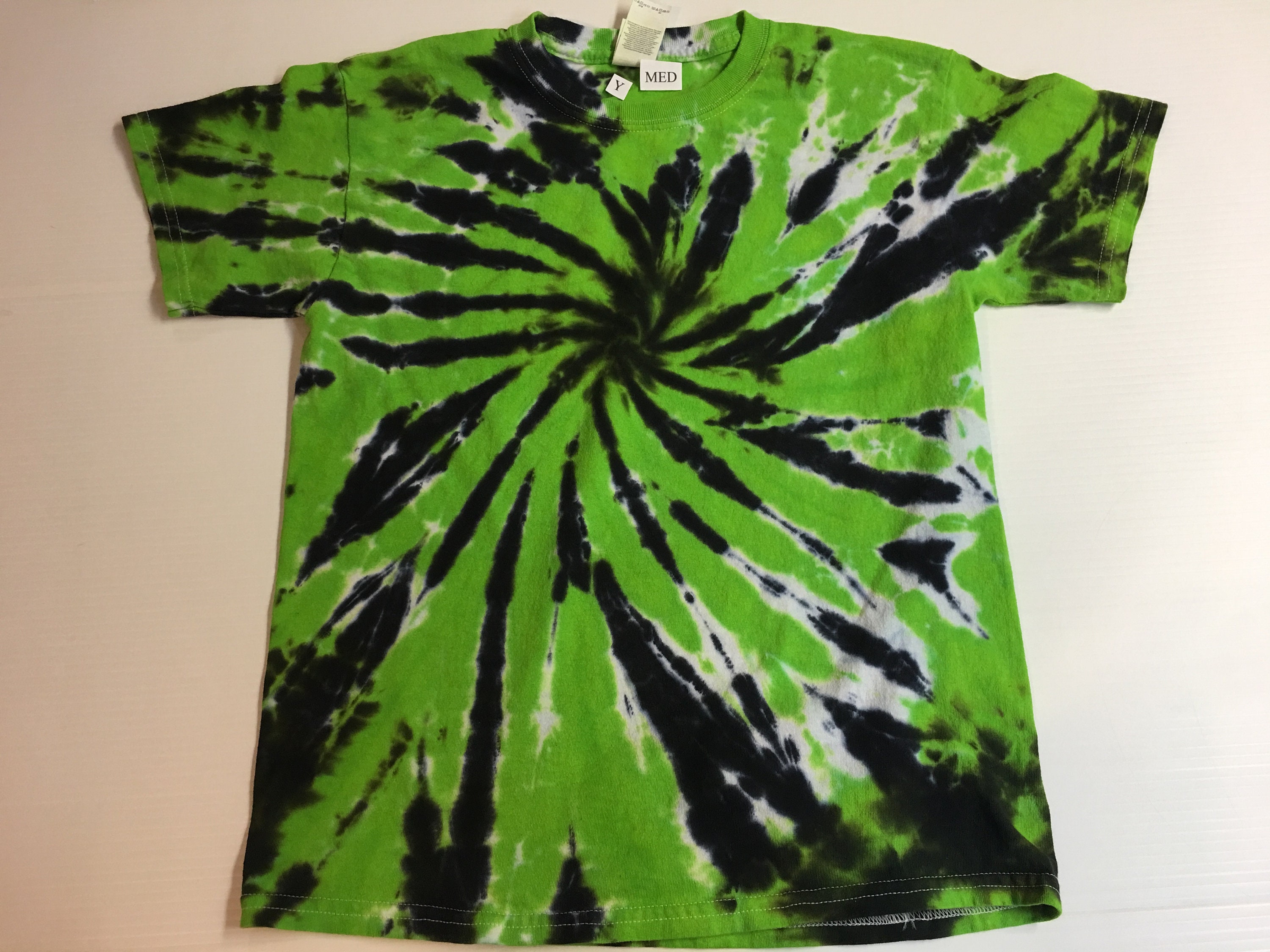 Tied and Dyed by hand. Spider or starburst spiral black and green. 100% cotton. Multiple sizes.